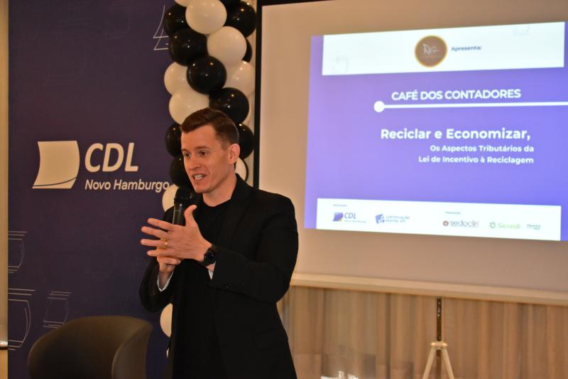 A Câmara de Dirigentes Lojistas de Novo Hamburgo (CDL-NH) realizou nesta terça-feira (7), mais uma edição do Café dos Contadores, com o tema “Reciclar e economizar: os aspectos tributários da lei de incentivo à reciclagem”. O encontro reuniu profissionais da área contábil para debater como empresas e pessoas físicas podem direcionar parte do Imposto de Renda devido a projetos de sustentabilidade e reaproveitamento de resíduos.