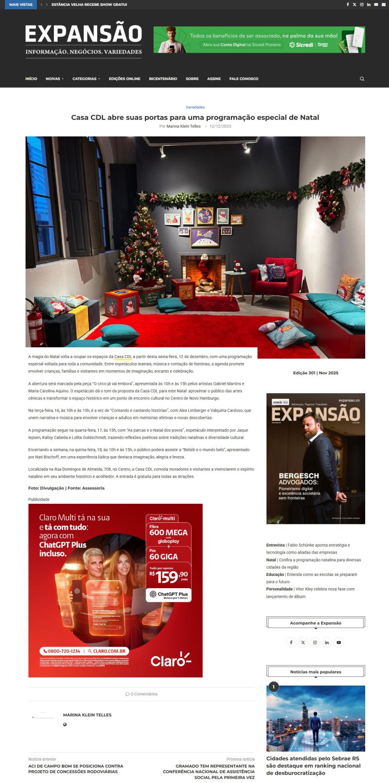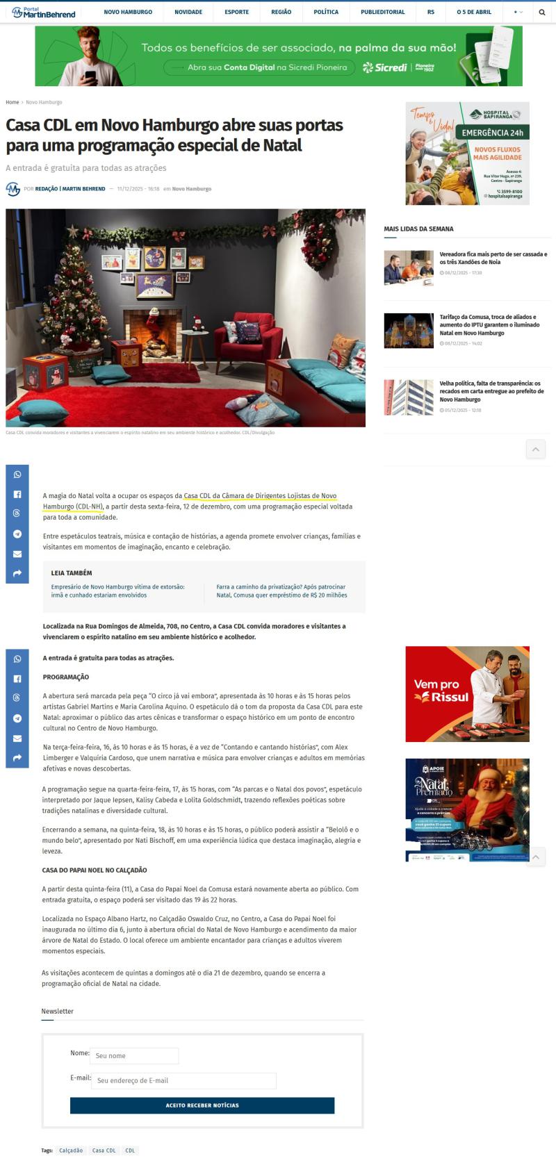 Casa CDL abre suas portas para uma programação especial de Natal é destaque na imprensa local