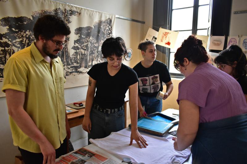 técnicas gráficas. Foram disponibilizados tintas, telas, luvas, tintas para