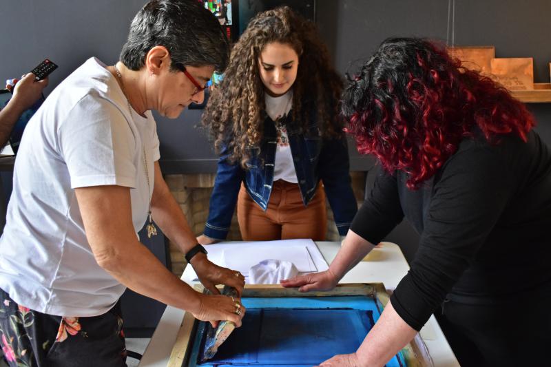 A Casa CDL, em Novo Hamburgo, recebeu nesta quinta-feira (18) a oficina “Experimentação com Serigrafia”, organizada pelos acadêmicos do curso de Moda e Artes Visuais da Universidade Feevale, com a participação especial da artista Fernanda Soares e da professora Alexandra Eckert.