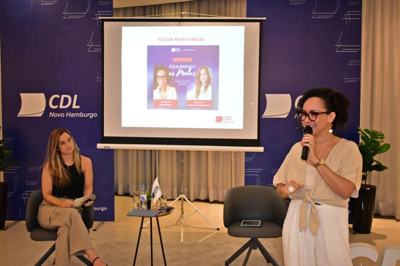 Realizado na noite de quarta-feira (12), no Salão Nobre da CDL-NH, o encontro trouxe um bate-papo inspirador com as psicólogas Manuela Albornoz e Sara Adais, que conduziram a conversa sob o tema "Equilibrando os pratos – Você dá conta de tudo?".