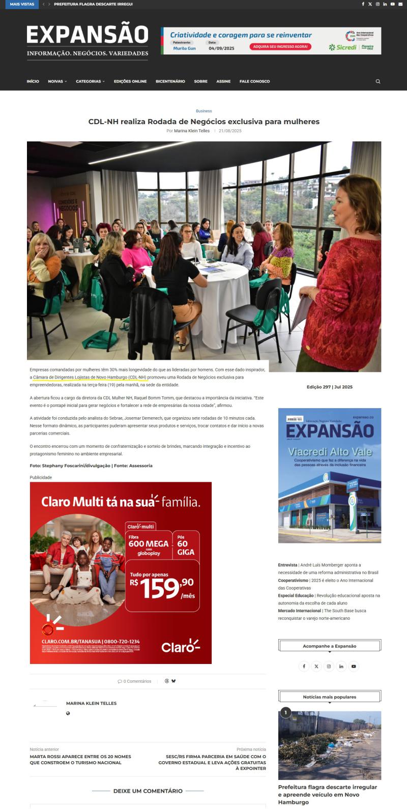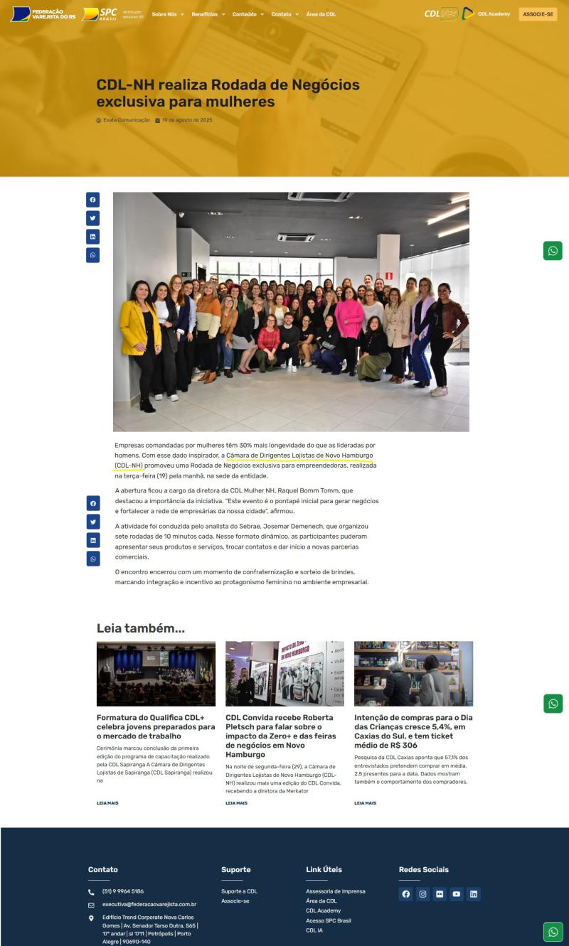 CDL-NH realiza Rodada de Negócios exclusiva para mulheres é destaque na imprensa local