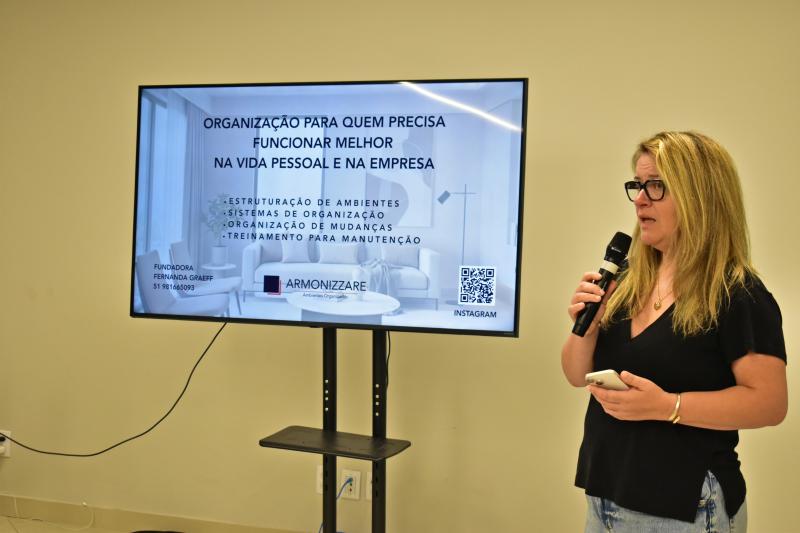 A abertura foi conduzida pela coordenadora do Núcleo de Inovação da CDL-NH, Cíntia Schenkel, que incentivou os participantes a aproveitarem o momento para ampliar conexões. “Identifiquem as possíveis conexões. Muitos encontros começam aqui e continuam em parcerias lá fora”, destacou.