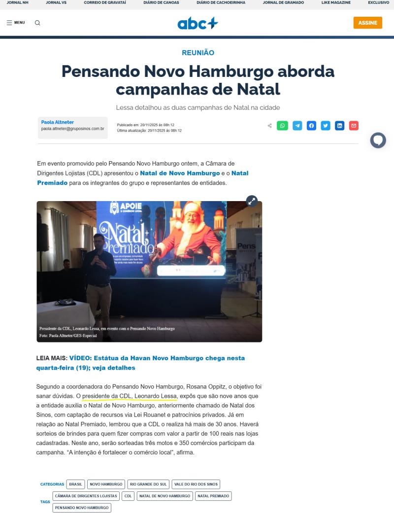 Pensando Novo Hamburgo aborda campanhas de Natal é destaque na imprensa local