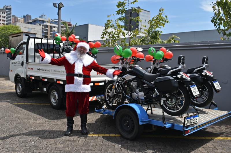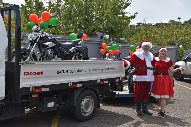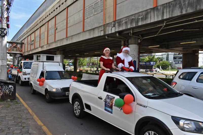 A Câmara de Dirigentes Lojistas de Novo Hamburgo (CDL-NH) realizou, na tarde de sexta-feira (14), uma carreata natalina que percorreu vias do Centro e de Canudos. A ação integrou a programação do Natal Premiado 2025 e contou com a participação do Papai Noel, da Mamãe Noel e de um guincho que transportou as três motos que serão sorteadas no início de janeiro.