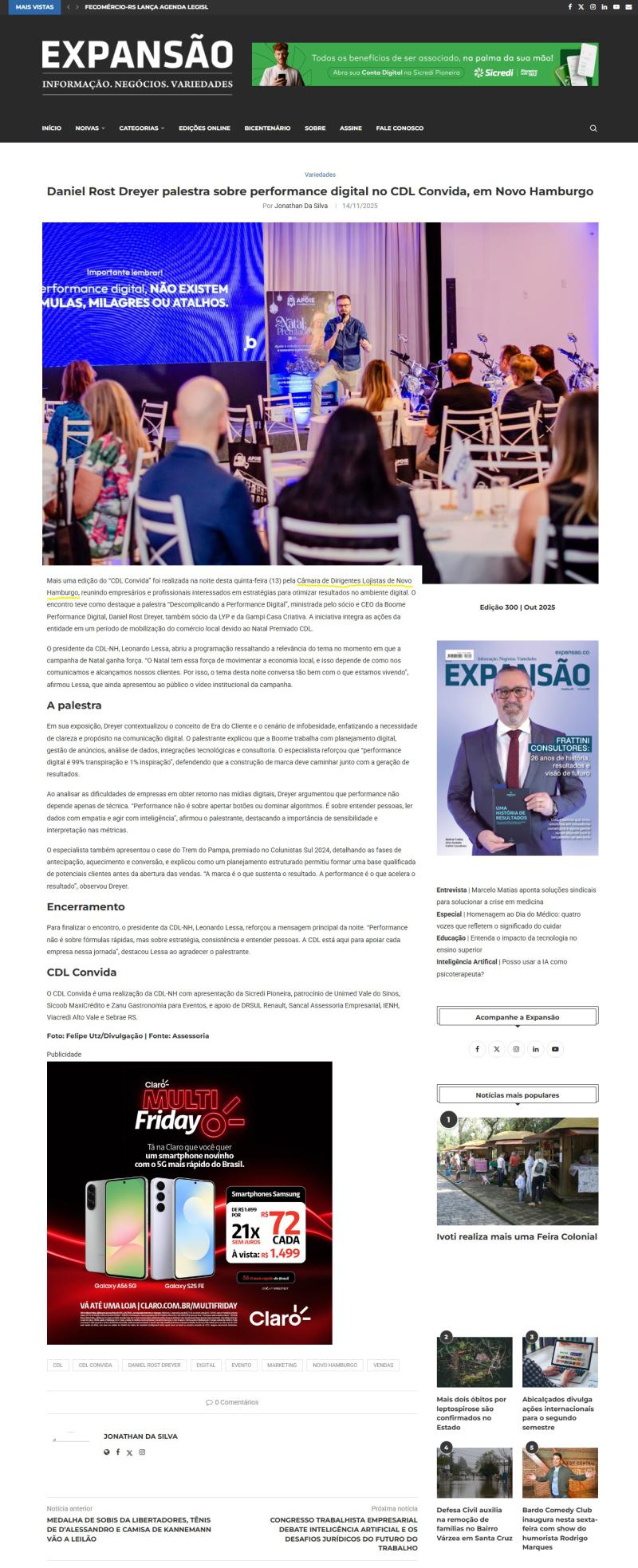 17 CDL Convida recebe Daniel Rost Dreyer para descomplicar a performance digital é destaque na imprensa local