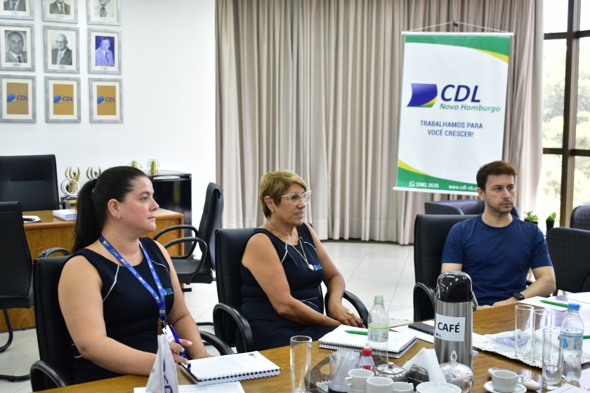 A diretoria da Câmara de Dirigentes Lojistas de Novo Hamburgo (CDL-NH): diretor Comercial e de Serviços, Felipe Henz; diretora de Marketing, Janaína Giovenardi; gerente executiva, Vera Lange e coordenadora de marketing, Graziele Jung, se reuniu com o analista de atendimento do Sebrae, Josemar Demenech. O encontro, cujo objetivo foi planejar e preparar as ações de 2023, ocorreu na sala de reuniões das CDL, durante a manhã desta terça-feira (14).