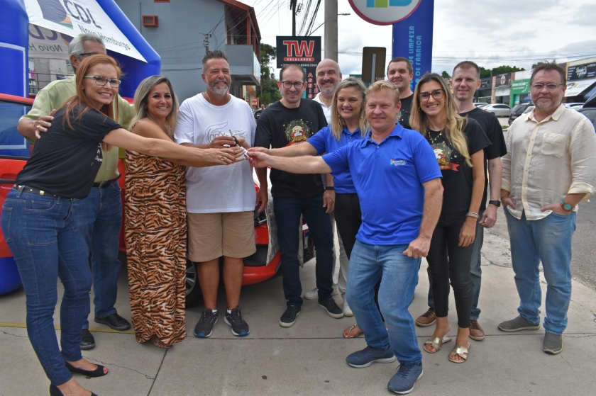 O consumidor Paulo Fernando Schneider está iniciando o ano ainda mais alegre. Ele recebeu nesta sexta-feira (17), um veículo Fiat Mobi zero quilômetro, que ganhou na campanha Natal Premiado 2022 da Câmara de Dirigentes Lojistas de Novo Hamburgo (CDL-NH). O morador de Novo Hamburgo, de 55 anos, disse que vai ficar com o carro para passear.
