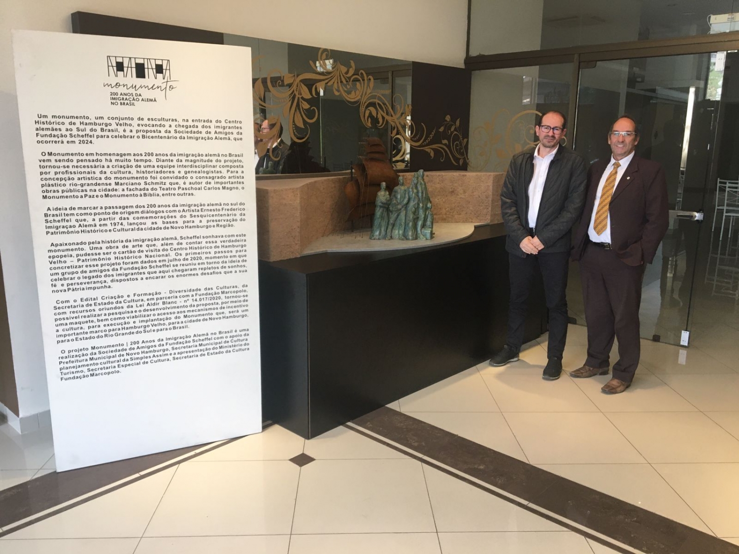 Na contagem regressiva para o bicentenário da imigração no Brasil, a ser comemorado em 25 de julho de 2024, a Câmara de Dirigentes Lojistas de Novo Hamburgo (CDL-NH) recebe a exposição itinerante do protótipo do Monumento 200 anos da Imigração Alemã no Brasil, que representará as famílias dos primeiros 39 imigrantes alemães que chegaram em São Leopoldo em 1824, dando início oficialmente à colonização alemã em terras brasileiras. As visitas são gratuitas e podem ser feitas até o dia 7 de junho na CDL-NH, localizada na Rua Domingos de Almeida, 708, Centro.