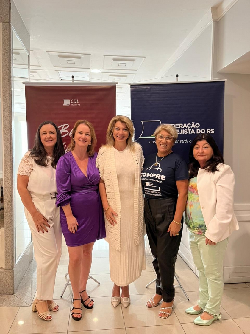 A CDL Mulher RS reuniu-se presencialmente pela primeira vez neste ano por um motivo especial: incentivar a formação de núcleos femininos nas Câmaras de Dirigentes Lojistas (CDLs) associadas à Federação Varejista do RS. O encontro ocorreu nesta terça-feira (26), no Hotel Plaza São Rafael, em Porto Alegre. A CDL de Novo Hamburgo tem o seu Núcleo da Mulher Empreendedora (NME) desde 2016. Algumas das embaixadoras da nova gestão: Raquel da Cruz, Joice Koelzer, Camila Castilhos, Silvia Schneider, Cíntia Schenkel e Marinês Queiroz participaram do evento, juntamente com a diretora do NME, Raquel Bomm Tomm e a gerente executiva da entidade, Vera Lange. Quem também marcou presença foi a diretora da pasta da Mulher Empreendedora da Federação Varejista do RS e presidente da CDL Erechim, Débora Balbinotti Lunardi.