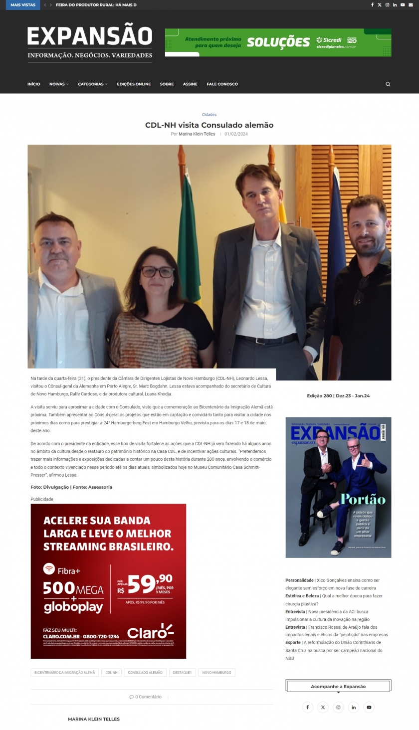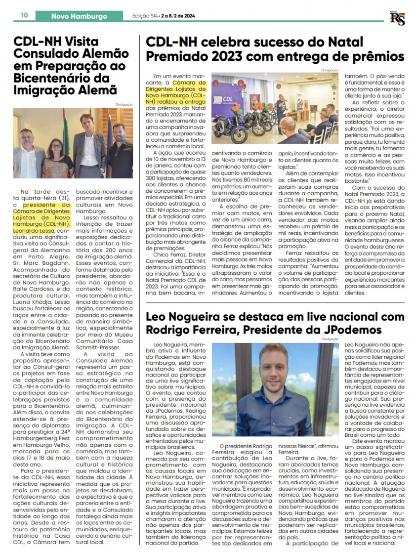 CDL-NH visita Consulado alemão é destaque na imprensa local