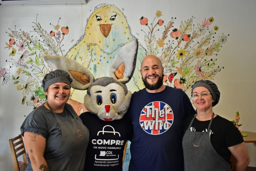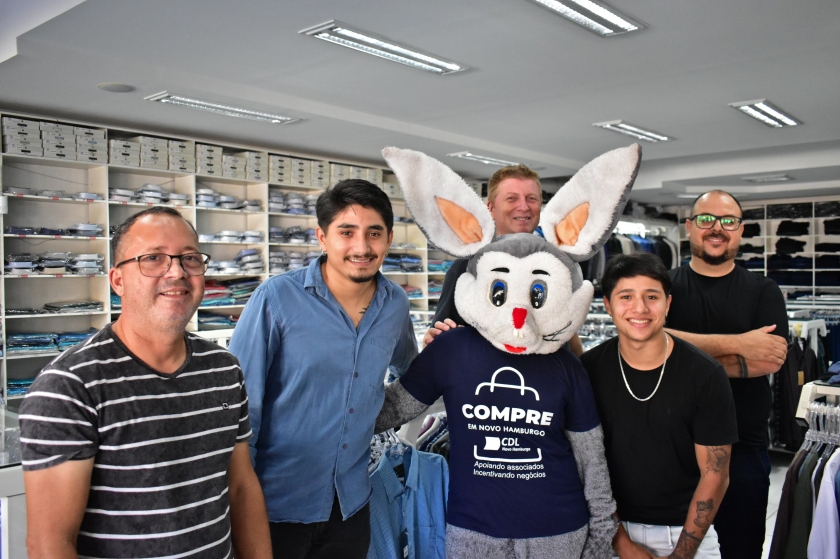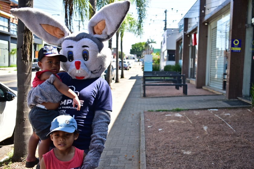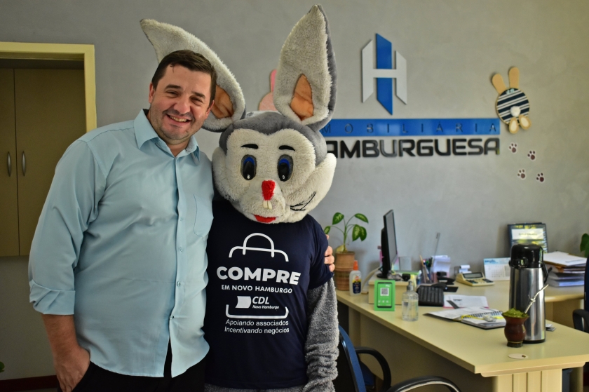 Durante a tarde desta quarta-feira (27) e a manhã desta quinta-feira (28), o coelhinho da Câmara de Dirigentes Lojistas de Novo Hamburgo (CDL-NH), encerrou suas visitas ao comércio hamburguense, levando muita doçura e alegria à comunidade dos bairros Rincão, Operário, Vila Nova, Primavera, Rio Branco, Santo Afonso, Pátria Nova e Industrial. O mais importante foi incentivar os consumidores a comprar em Novo Hamburgo, meta concluída com sucesso.