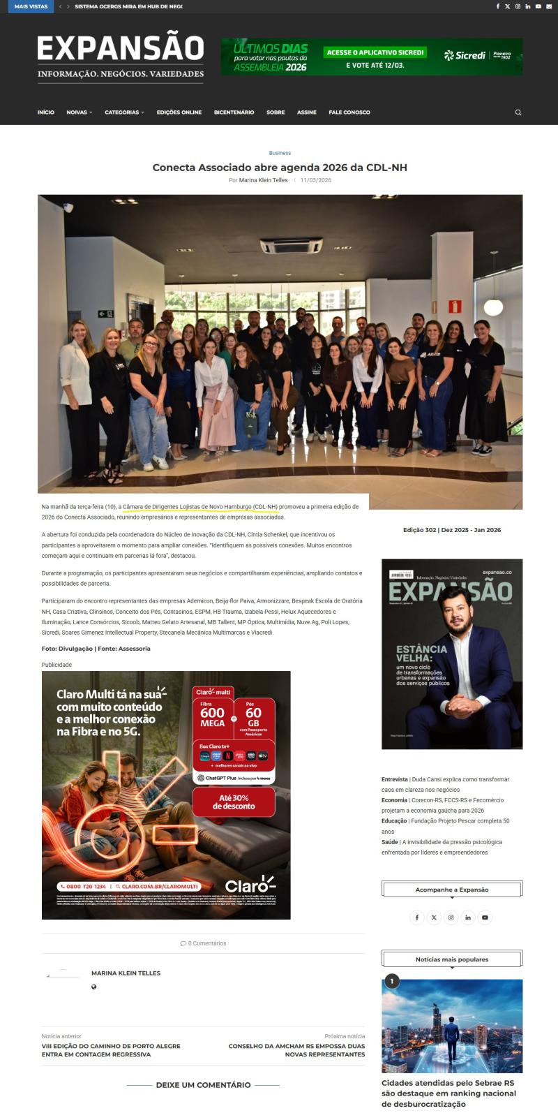 Conecta Associado abre agenda 2026 da CDL-NH é destaque na imprensa local