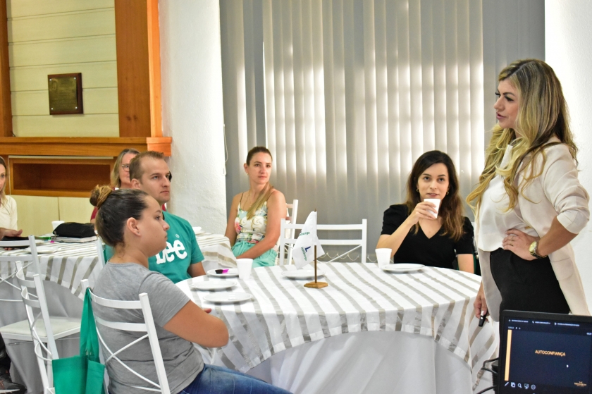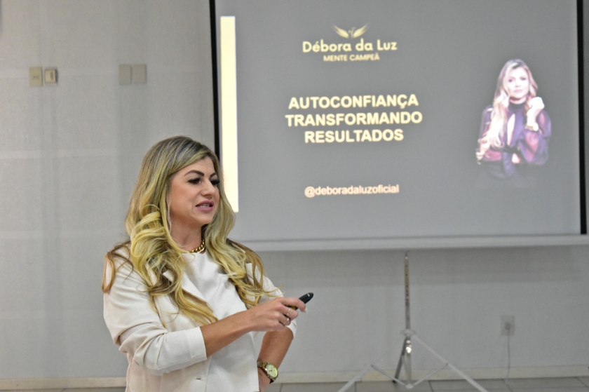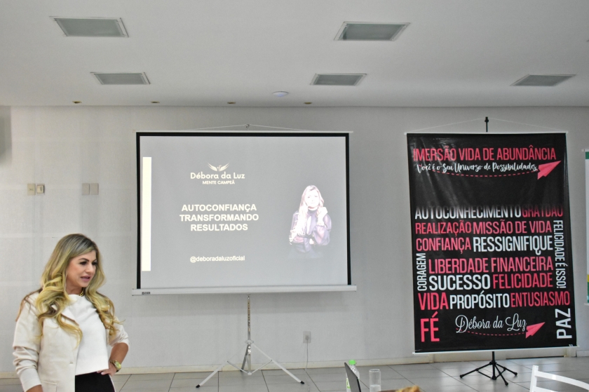 Com uma dinâmica feita em dupla, onde cada participante teve que responder ao colega por que merece o sucesso em no máximo 30 segundos, iniciou a palestra “Mente campeã: Autoconfiança transformando resultados” com a palestrante e treinadora comportamental, Débora da Luz.