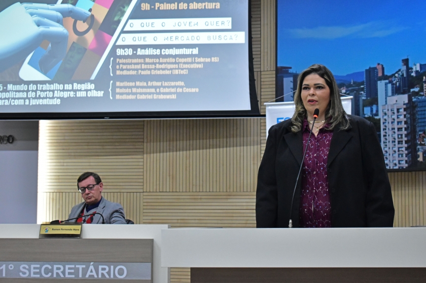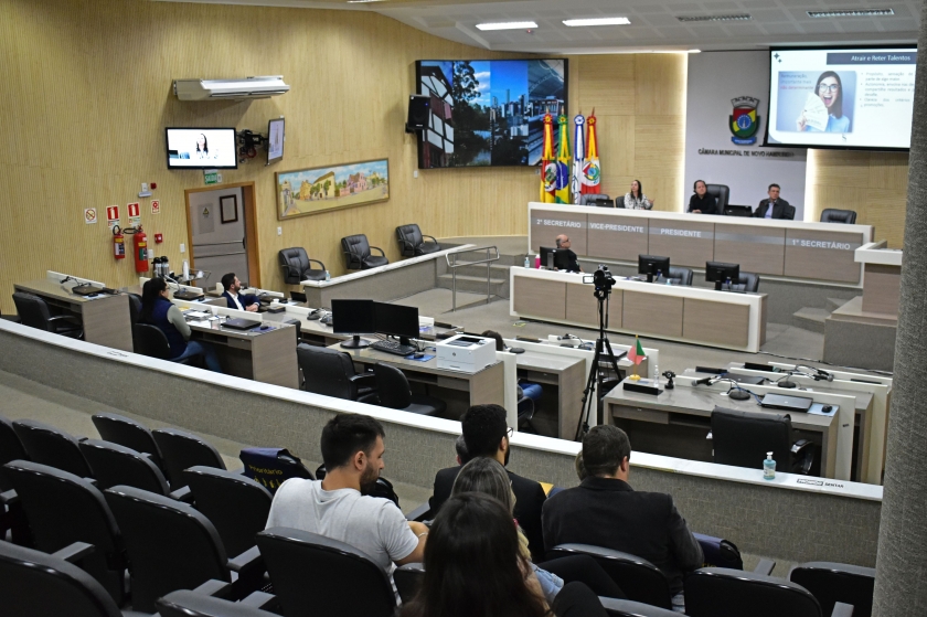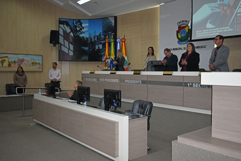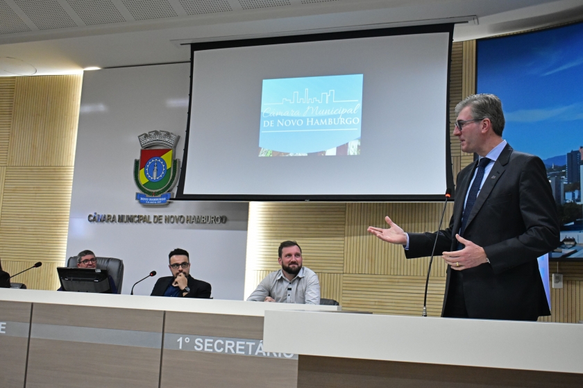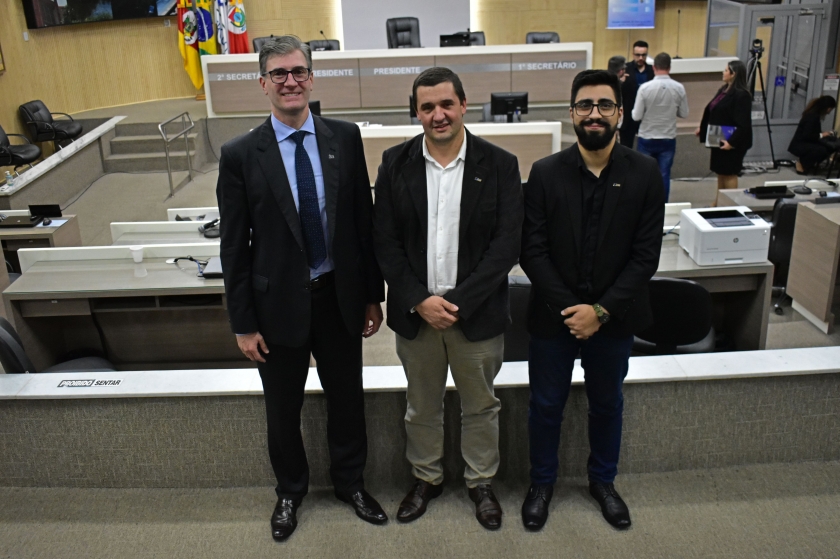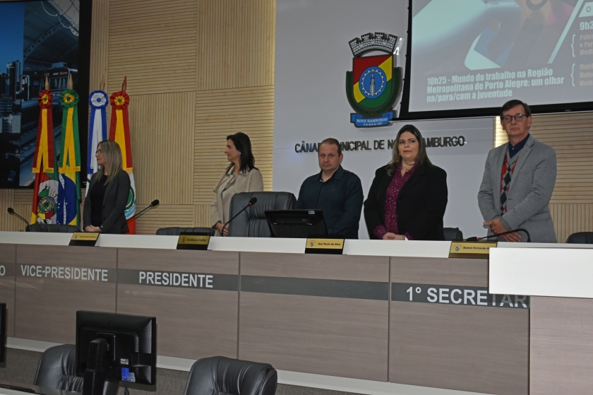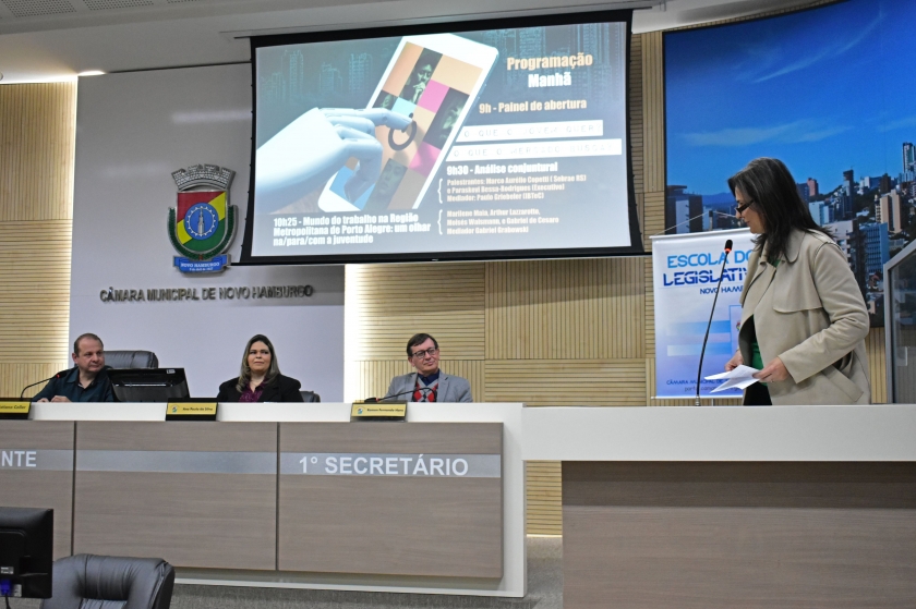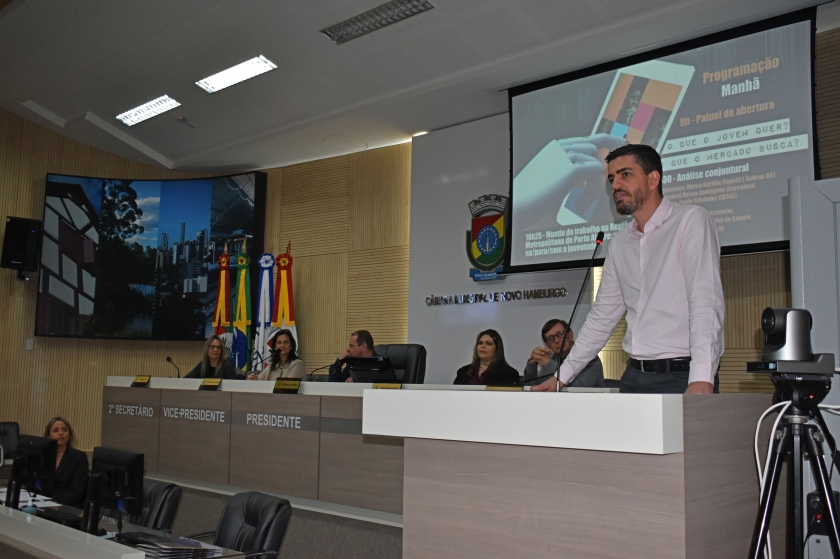 Mercado de trabalho, empreendedorismo e educação são temas que interessam os jovens. Pensando nisso, e com o objetivo de prepará-los aos desafios e oportunidades, ocorreu a 4ª edição do Seminário de Desenvolvimento Econômico, no Plenário da Câmara de Vereadores de Novo Hamburgo, na quinta-feira (1). O diretor da CDL Jovem, Carlos Kranz, era um dos painelistas, e estava acompanhado de outro membro do grupo: Gabriel Henrique de Farias da Silva. Além deles, também da Câmara de Dirigentes Lojistas de Novo Hamburgo (CDL-NH) participaram a gerente executiva, Vera Lange e a coordenadora de marketing e eventos, Graziele Jung.
