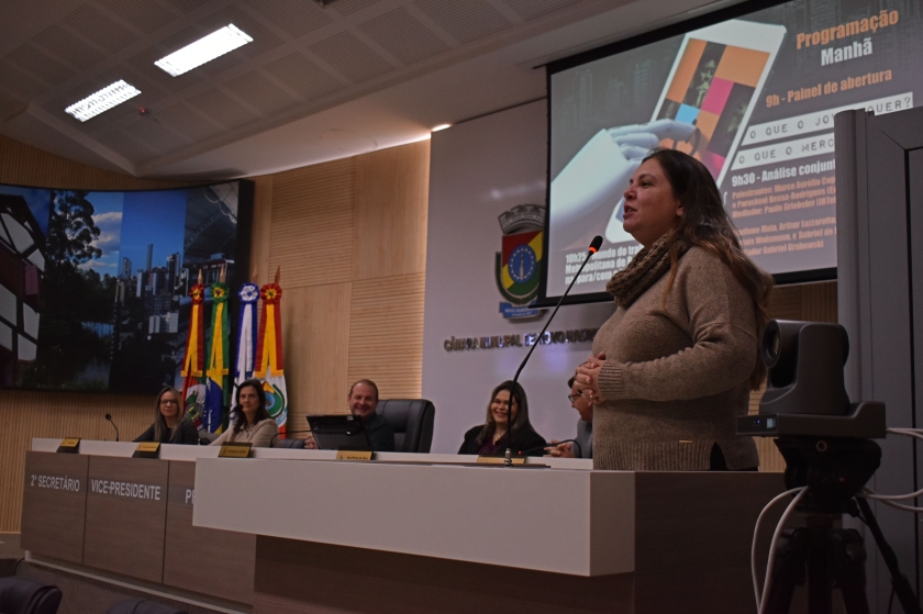 Na abertura do evento, representantes do poder público e instituições de ensino falaram sobre suas expectativas para as atividades do dia. O vereador e presidente do Legislativo, Cristiano Coller (PTB), abriu o seminário agradecendo a dedicação dos parceiros ao evento que passou integrar o calendário oficial do município. “É uma imensa alegria voltar presencial após a pandemia. Que seja um encontro de ótimos debates e que a gente saia com bastante ideias e sugestões”, realçou.