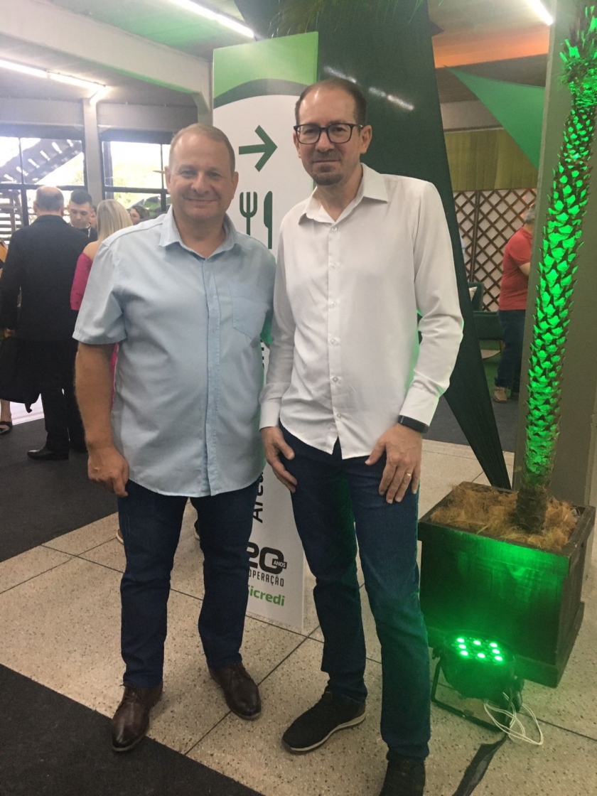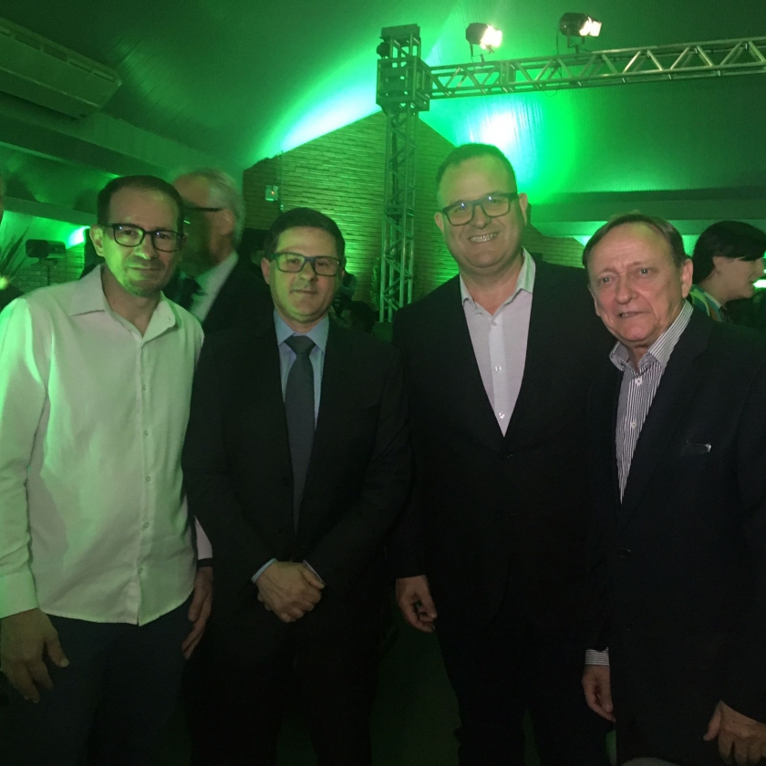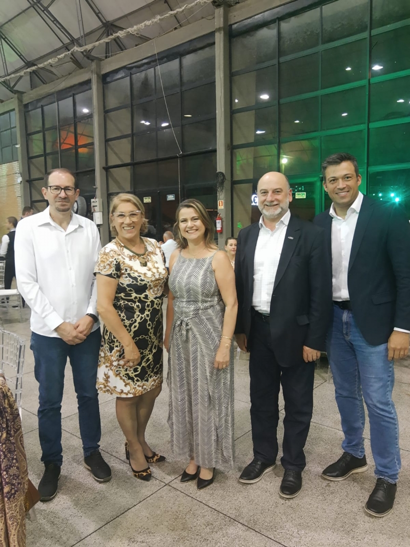 Na noite desta quinta-feira (8), a diretoria da Câmara de Dirigentes Lojistas de Novo Hamburgo (CDL-NH), prestigiou o evento solene dos 120 anos de cooperação Sicredi Pioneira, no auditório do Centro de Eventos de Nova Petrópolis. O presidente da entidade, Jaime Machado, estava acompanhado do diretor de Qualidade, Diego Martinez, e da gerente executiva, Vera Lange. Eles foram recebidos pelo presidente do Conselho de Administração da Sicredi, Tiago Luiz Schmidt e pelo diretor-executivo, Solon Stapassola Stahl.