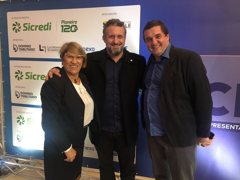 Durante esta quinta-feira (29), o presidente da Câmara de Dirigentes Lojistas de Novo Hamburgo (CDL-NH), Jaime Machado, acompanhado do diretor da CDL Jovem, Carlos Kranz; e da gerente executiva, Vera Lange, participou do Prato Principal, promovido pela Associação Comercial, Industrial e de Serviços de Novo Hamburgo, Campo Bom, Estância Velha e Dois Irmãos (ACI-NH/CB/EV/DI).