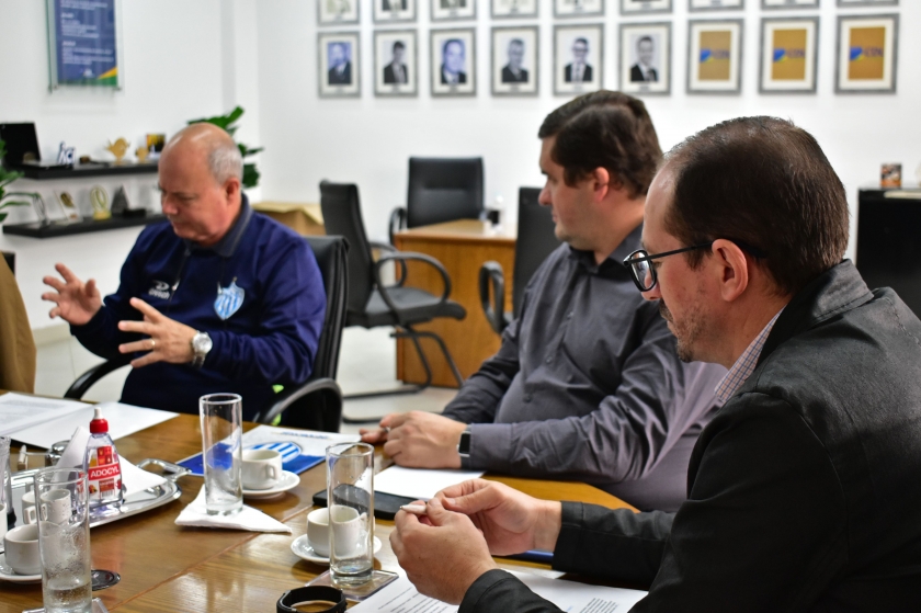 Para apresentar a parte comercial e o projeto Gol de Placa do Esporte Clube Novo Hamburgo (ECNH), o coordenador comercial do ECNH, Luis Fernando Martins, esteve na Câmara de Dirigentes Lojistas de Novo Hamburgo (CDL-NH), na tarde desta quarta-feira (27). Ele foi recebido pela diretoria da entidade: presidente, Jaime Machado; vice-presidente, Chico Ferraz; diretor Comercial e de Serviços, Felipe Henz; diretor da CDL Jovem, Carlos Kranz e gerente executiva, Vera Lange. O objetivo da visita foi formar uma futura parceria e aproximar o Clube com as entidades associativas do município.