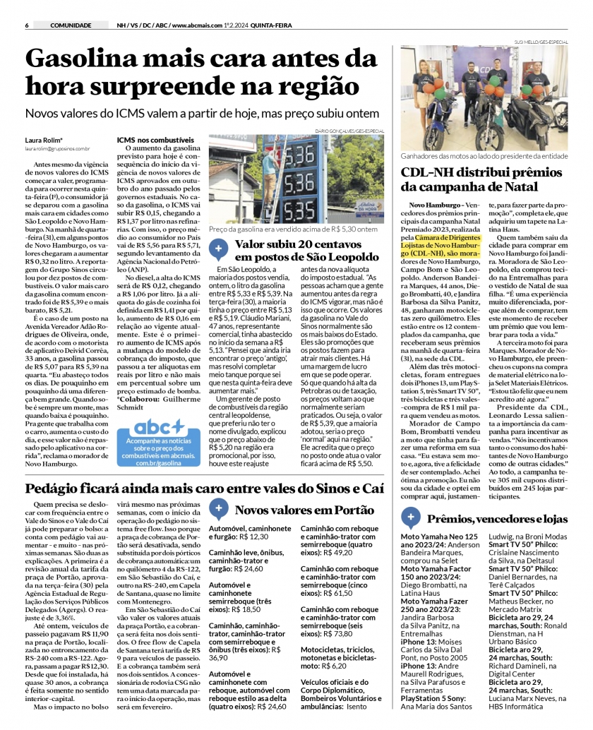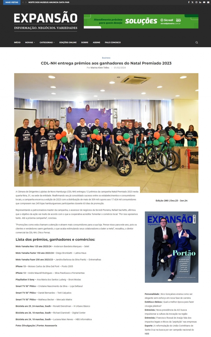 Entrega dos prêmios da campanha Natal Premiado 2023 é destaque na imprensa local