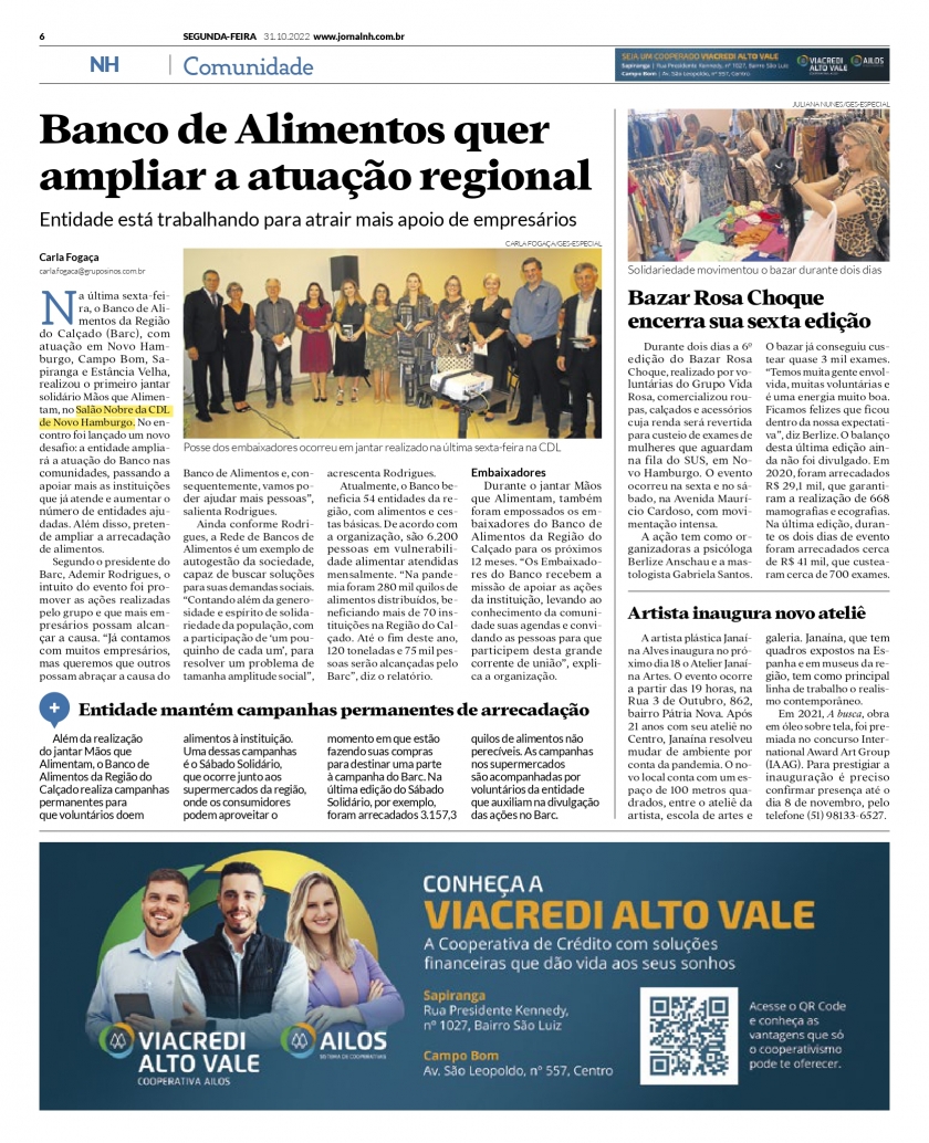 Evento do Banco de Alimentos na CDL-NH é destaque na imprensa local