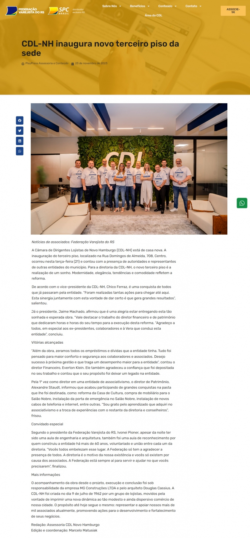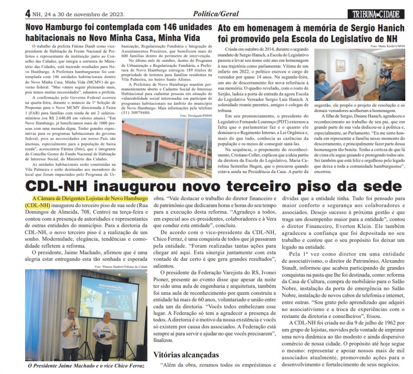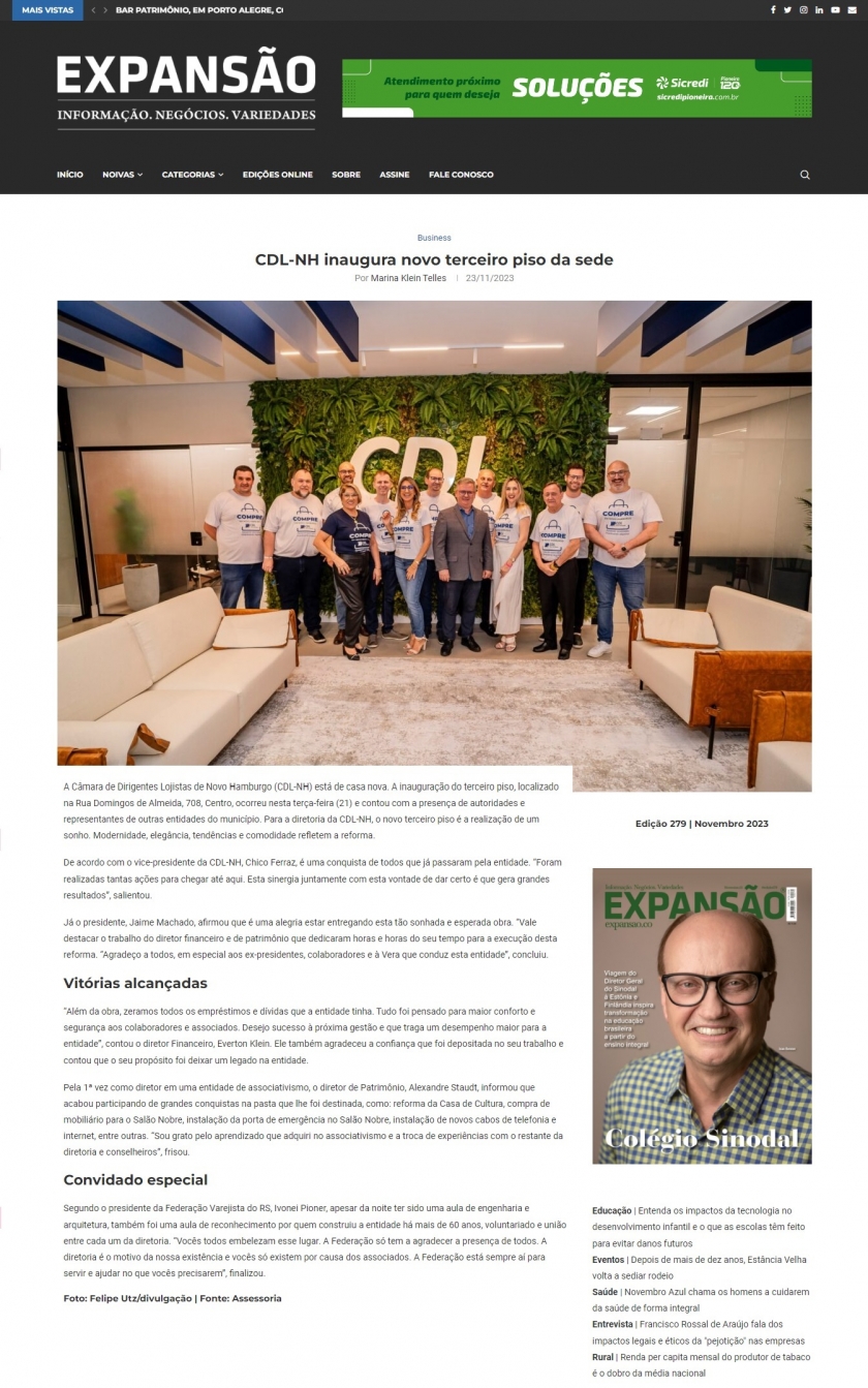 Inauguração do 3° piso da CDL-NH é destaque na imprensa local