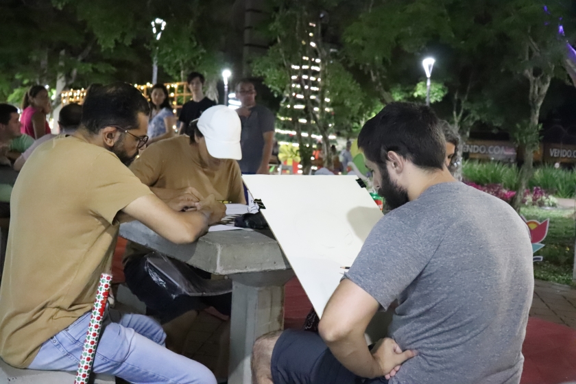 Promovido pela Casa CDL da Câmara de Dirigentes Lojistas de Novo Hamburgo (CDL-NH), o encontro mensal de desenhistas e simpatizantes, mais conhecido como Jazzenhando, realizou sua última edição de 2022, na noite de quinta-feira (15), na Praça do Imigrante.
