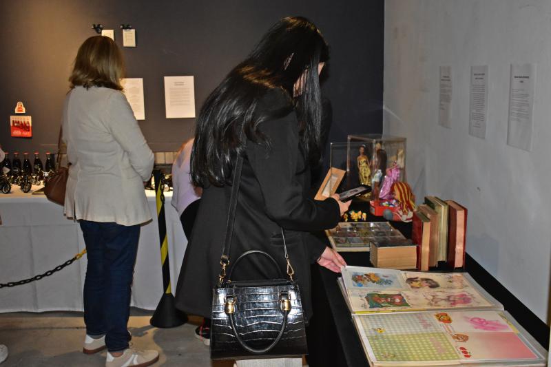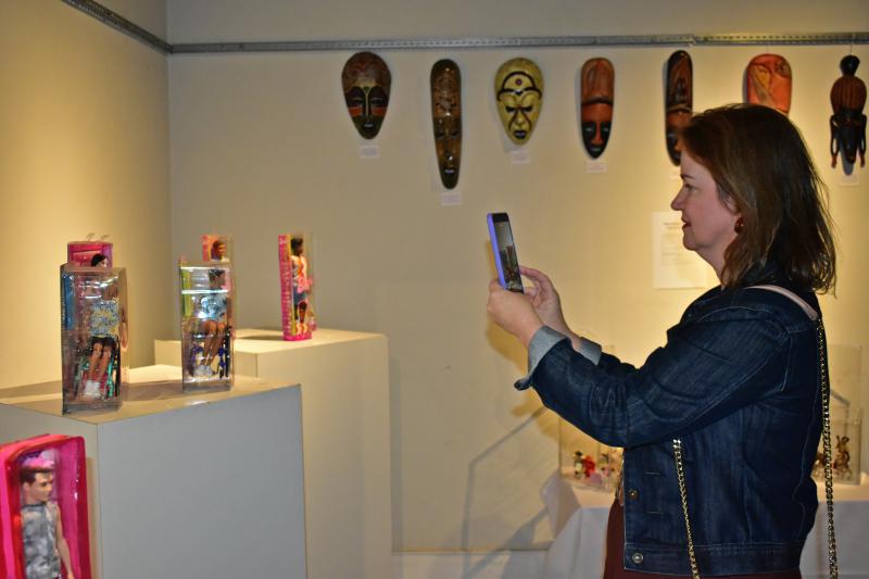 Guedes, com bonecos Ken; Mara Dias, com brinquedos das décadas de 1970 e 1980;
