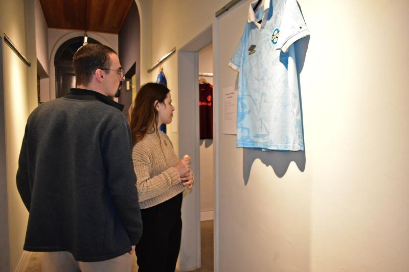 Bernardo Zagury Rodrigues, com camisetas do Grêmio; Stephany Foscarini, com