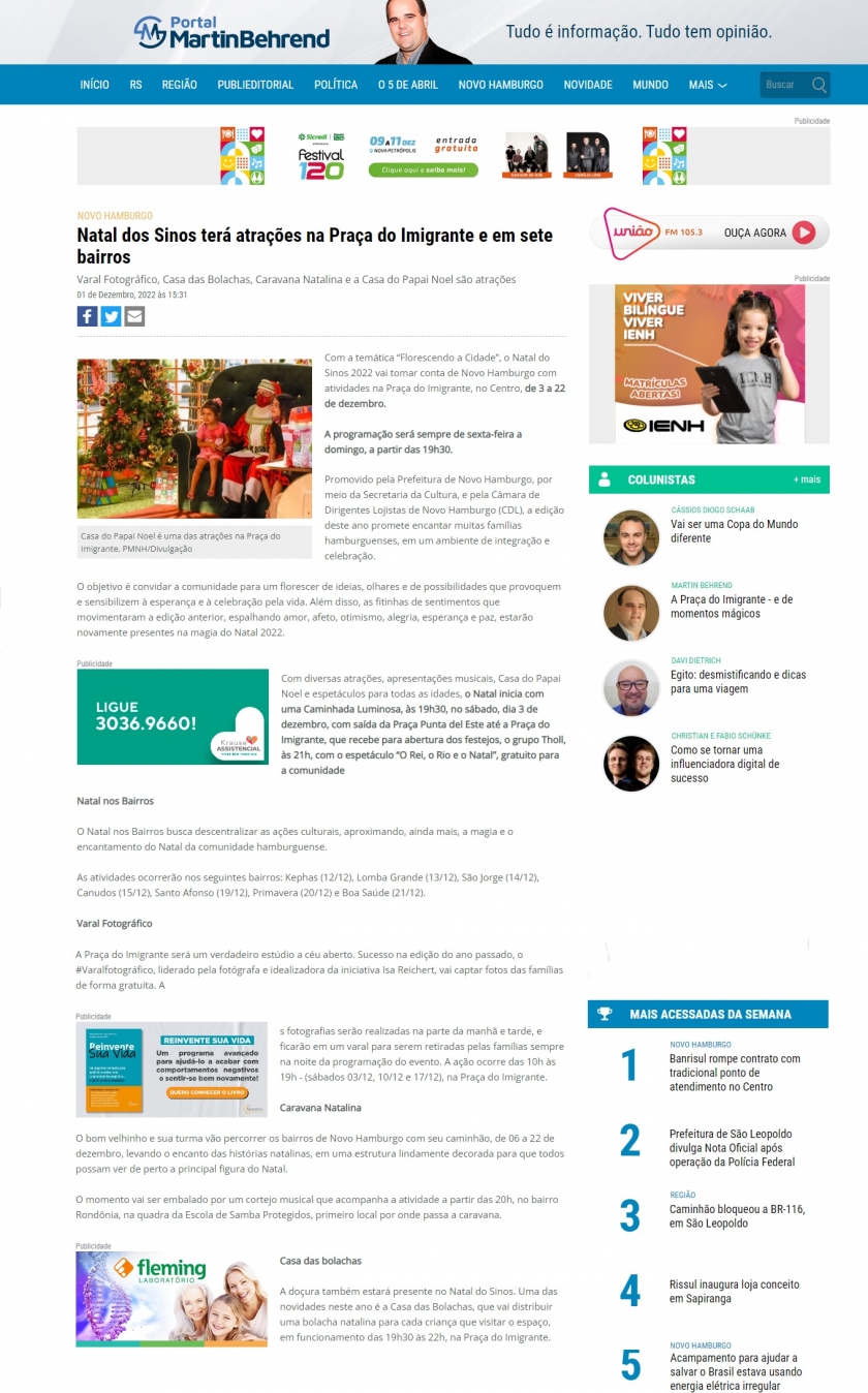 Natal dos Sinos é destaque na imprensa local