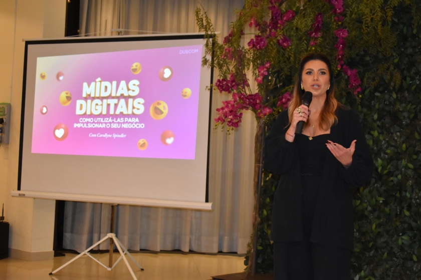 A internet tem diversos benefícios, um deles é alavancar os negócios. A CEO da agência de marketing digital, DuoCom e chief marketing officer da brands.HUB, empresa em São Paulo, Carollyne Spindler, mostrou que é possível na palestra, cujo o tema foi “Mídias digitais: como utilizá-las para impulsionar o seu negócio”, na noite de quarta-feira (6), na sede da Câmara de Dirigentes Lojistas de Novo Hamburgo (CDL-NH). O evento fez parte do Núcleo da Mulher Empreendedora (NME). A entrada era dois quilos de alimentos não perecíveis e foram arrecadados 192 quilos.