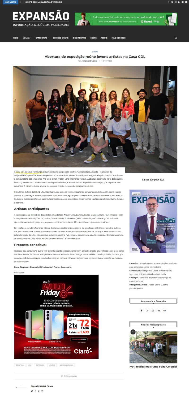 17 Nova exposição ocupa a Casa CDL com cores, subjetividades e jovens artistas é destaque na imprensa local