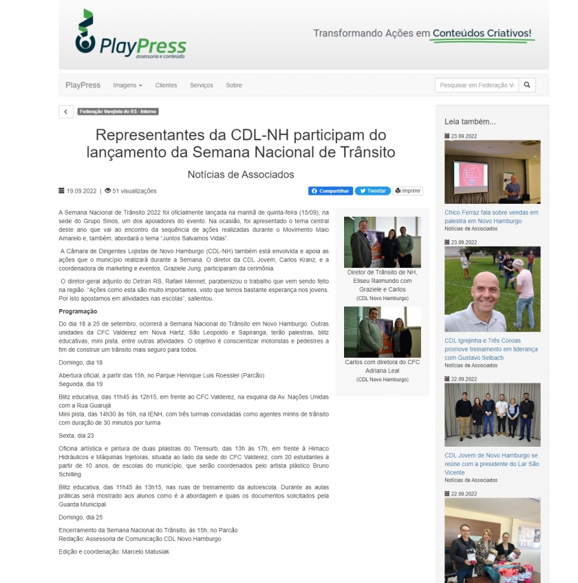Participação no lançamento da Semana Nacional de Trânsito é destaque na imprensa