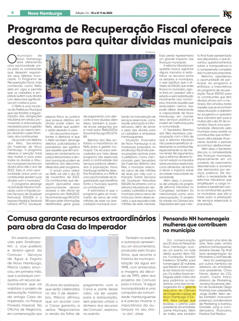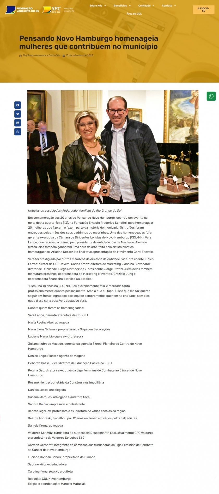 18 Set Pensando Novo Hamburgo homenageia mulheres que contribuem no município é destaque na imprensa local
