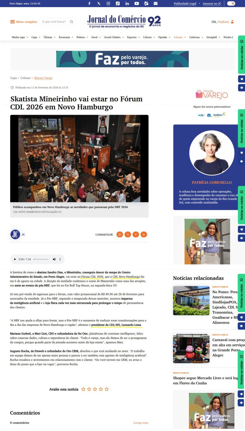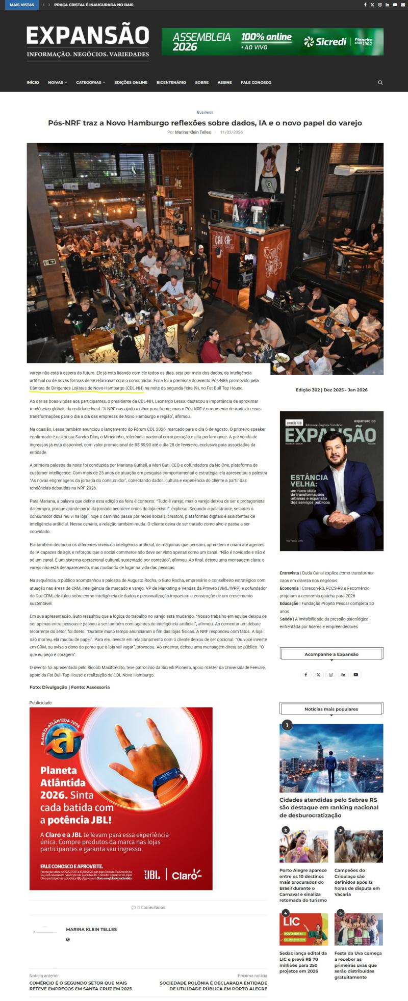 12 Fev Pós-NRF traz a Novo Hamburgo reflexões sobre dados, IA e o novo papel do varejo é destaque na imprensa local