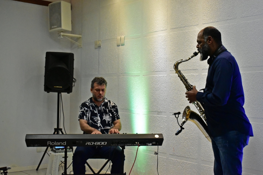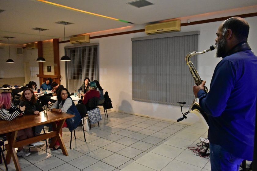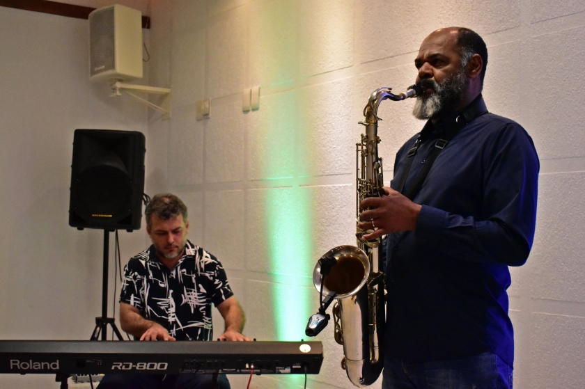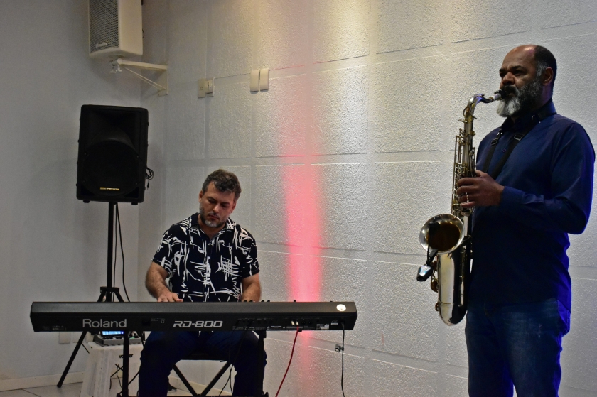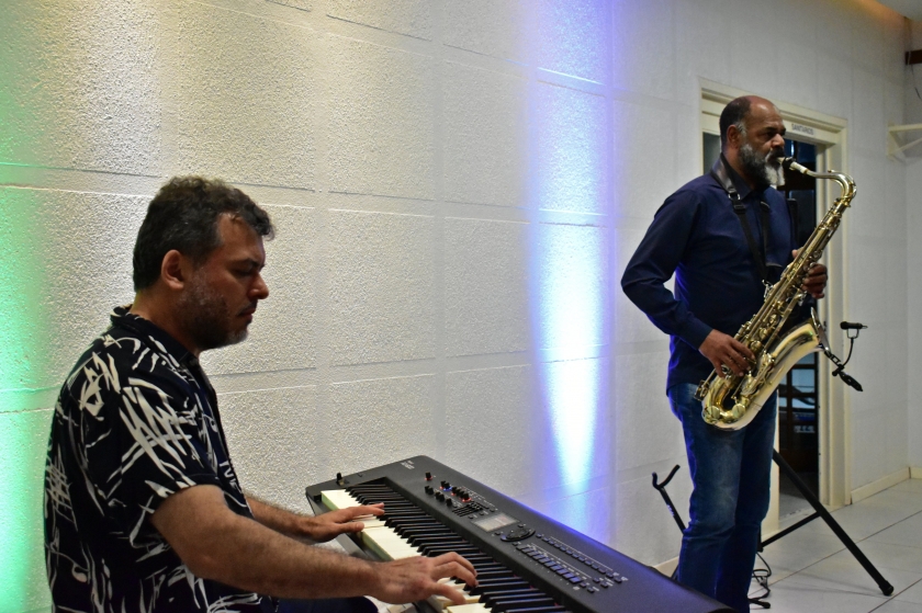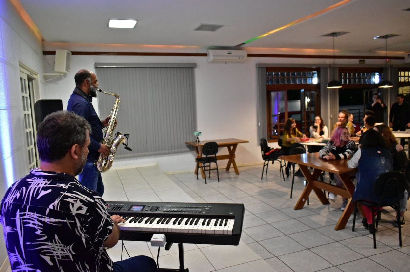 Na mesma noite, no Salão de Eventos da CDL-NH, ocorreu mais uma edição do Jazzenhando com show de Tiago D’Andrea (piano e teclado) e Urânio Laureano (saxofone). O evento contou com as deliciosas pizzas da Massa Fina e as renomadas cervejas artesanais da La Missioneira.