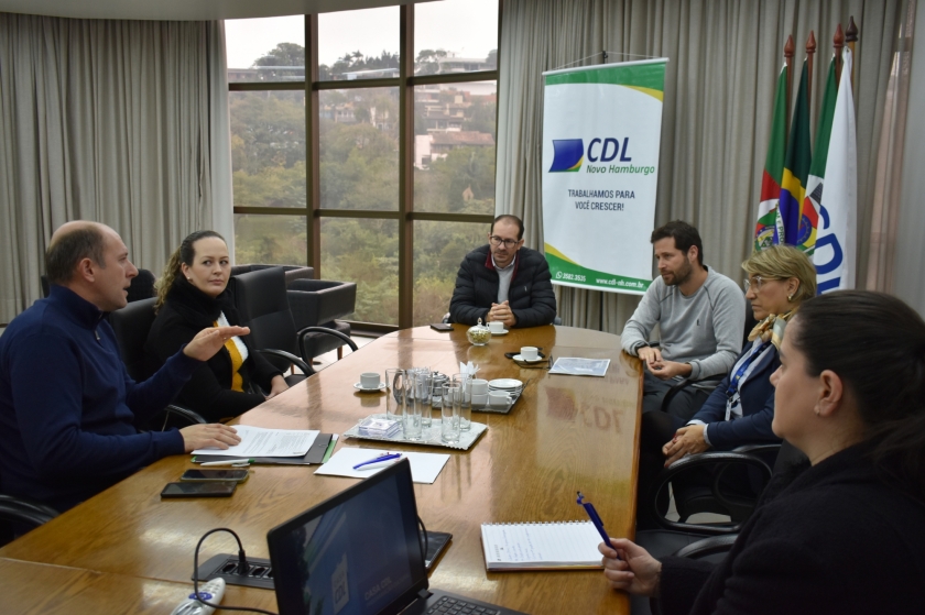 O grupo da CDL-NH recebeu a gerente de empresas da Agência Sicredi