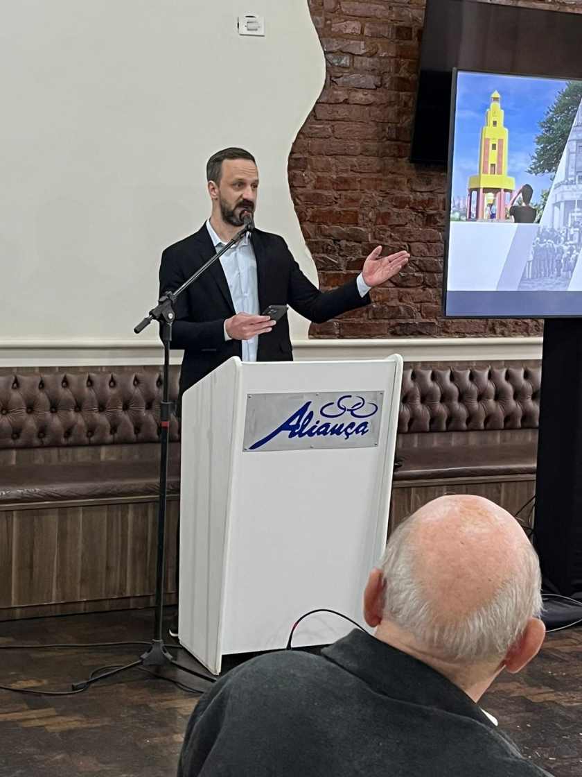 apresentação do projeto de restauro e memorial monumento ao imigrante, na Sociedade