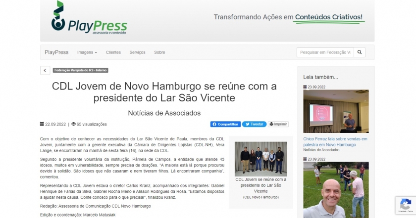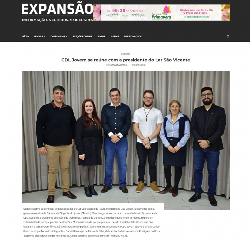 21 Set Reunião entre CDL Jovem e a presidente do Lar São Vicente de Paula é destaque na imprensa local