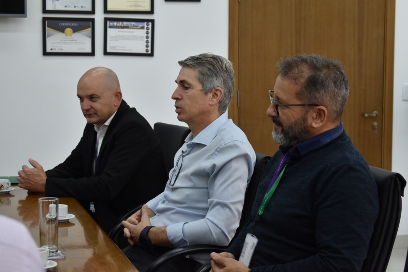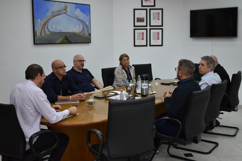 Daniel Schons, Jovio Lorenzini e Ronaldo Liota se encontraram com o presidente da CDL, Jaime Machado, e o diretor Comercial e de Serviços, Felipe Henz, além da gerente executiva, Vera Lange, e o coordenador comercial, Alceu Müller.